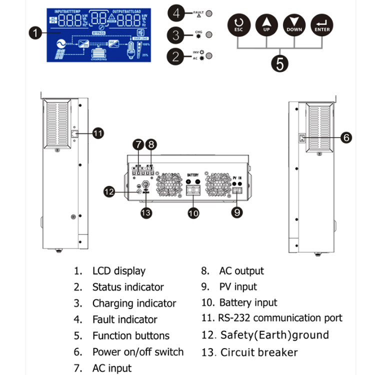 - Có thể thiết lập nguồn ưu tiên: Pin mặt trời, ắc quy và điện lưới