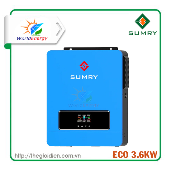 - Inverter Hybrid Sumry MPS-VIII ECO 3.6KW là biến tần đa chức năng: chạy độc lập trực tiếp từ tấm pin (không cần ac quy, không cần lưới), bù lưới.