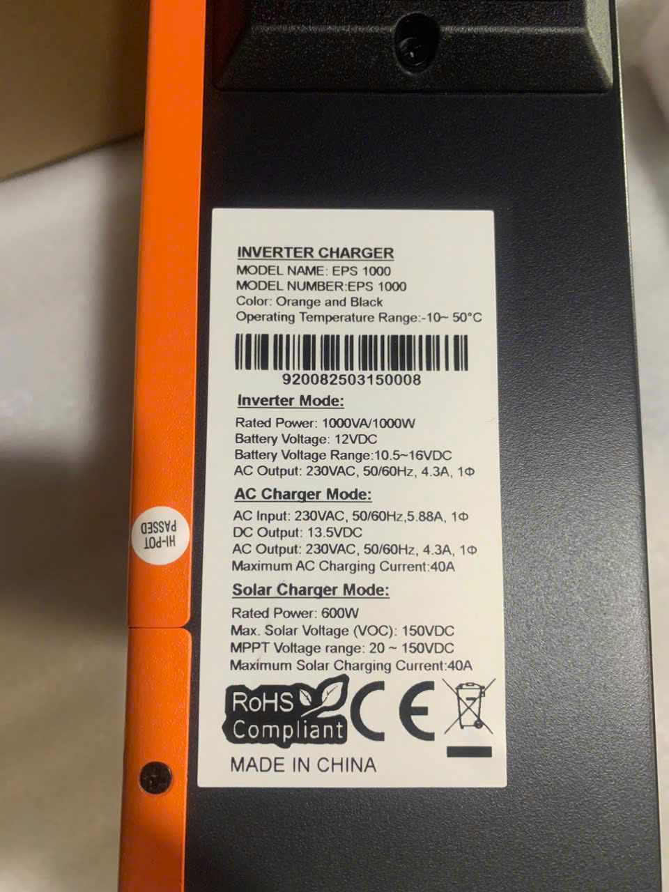 - Khả năng xử lý năng lượng PV: Công suất tối đa của hệ năng lượng mặt trời lên tới 600W, với điện áp PV dao động từ 30V-150VDC, giúp tối ưu hoá hiệu suất.