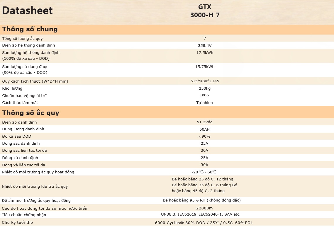 Thông số kỹ thuật Pin lưu trữ Lithium Sofar 17.5KW (GTX3000-H7) 3pha